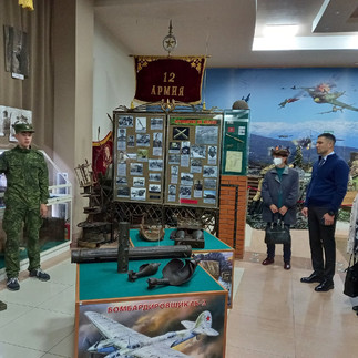 В Выставочном зале Боевой Славы состоялось торжественное мероприятие, в рамках которого наши курсанты - участники программы «Юный экскурсовод» провели экскурсию по залу, посвящённому Великой Отечественной войне, для почётных гостей: депутата Городской Думы города Краснодара Серафима Викторовича Тимченко и Ирины Александровны Петуниной – внучки командира легендарной 9-й Краснодарской пластунской дивизии Петра Ивановича Метальникова. После экскурсии состоялось возложение цветов к памятной стеле Героям Советского Союза.